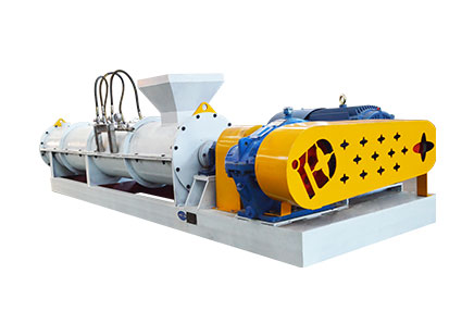 Carbon black granulator is a kind of wet type continuous granulating machine mainly designed for carbon black industry. Adding additives is not a must step. Relying on strong stirring and degasification function, carbon black powder will be twisted and extruded into granule product. It can be used individually or matched with mixer. Taeda can provide carbon black granulator without thermal insulation jacket or with steam thermal insulation jacket.